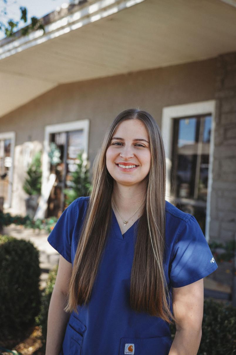 Emma was born in Texas but raised in Berryville, AR where she graduated high school in 2005. She has a Bachelor’s of Science in Physical Education with a minor in Health from University of the Ozarks where she played collegiate soccer and basketball during her time there. She met her husband, David while attending UofO and they moved to Dallas for 3 years after graduating where she worked at a large vet clinic and fell in love with veterinary medicine. They moved back to Arkansas in 2013 and shortly after started working at GVC. Emma’s husband is a Fire Captain at Station 10 for the Fort Smith Fire Department. They have 2 beautiful daughters, Ellie who was born in 2017 and Emmy who was born in 2020. They live in Greenwood with their weimaraner named Annie Girl and goldendoodle named Minnie. She also has 2 horses – a America Paint Horse named Butters and an American Quarter Horse named Remi. Emma’s time away from GVC is spent hanging out with her family, going to Crossfit, riding horses, taking pictures and anything/everything DIY.